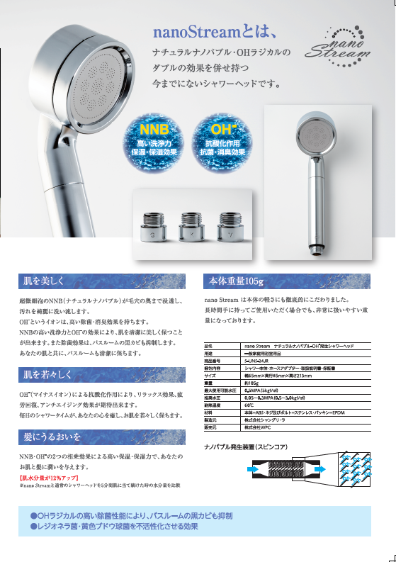 【新商品】nano Stream ナチュラルナノバブル OH- 発生シャワーヘッド【お知らせ】